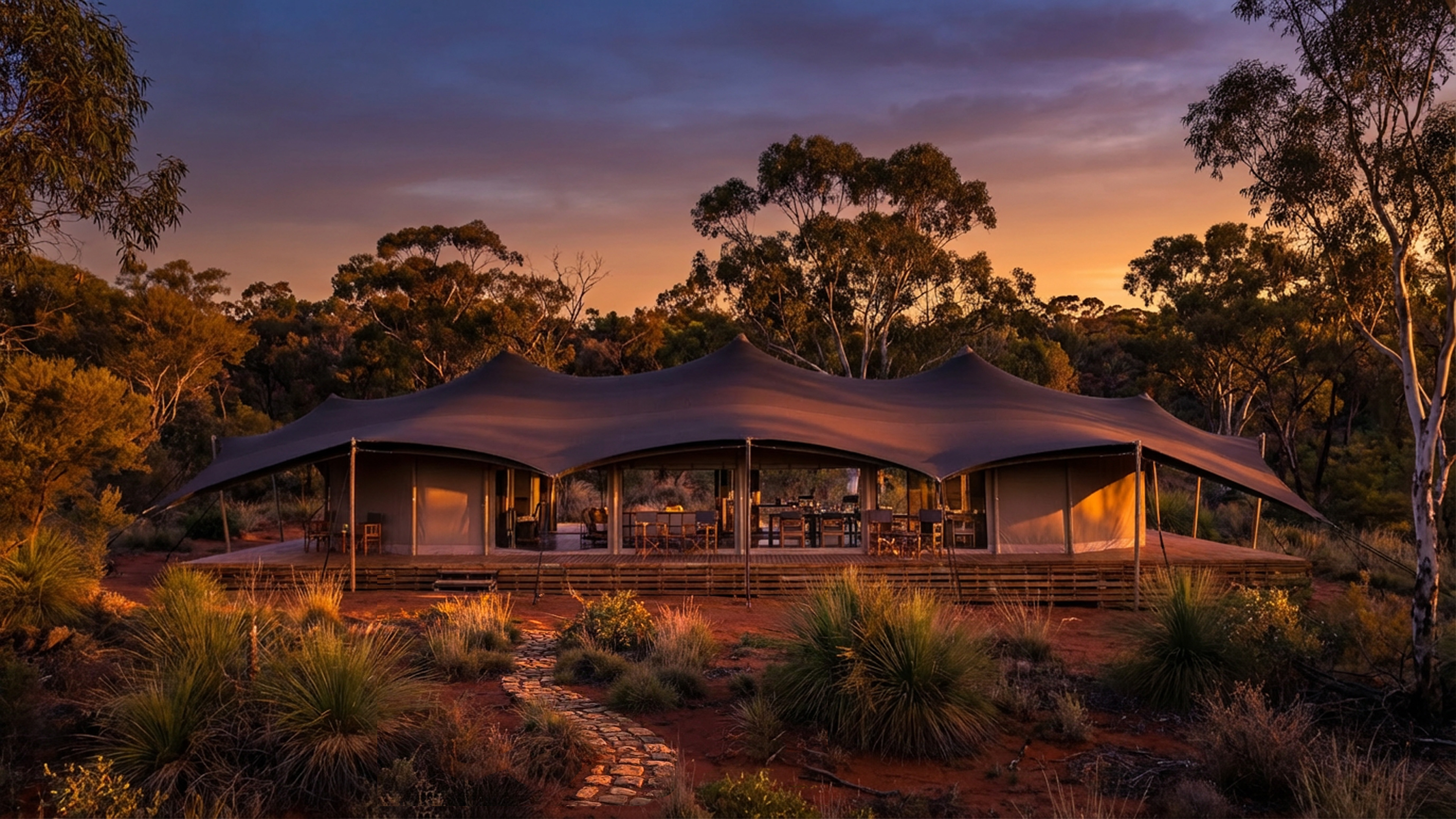 Tented suites open into the air with a soft sense of wonder, while cabins offer grounding warmth - two ways of arriving into the same stillness.